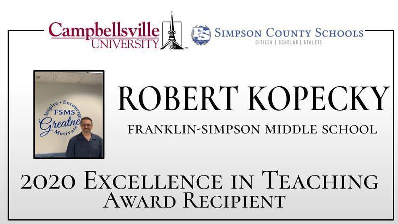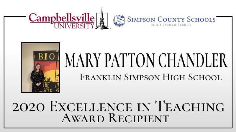 Campbellsville University began the Excellence in Teaching Award Program in 1987 with assistance from Mr. Earl Aaron and the Ward, Cundiff, and Aaron Memorial Fund. The purpose of the program is to recognize the quality teaching and learning taking place in the school systems throughout Kentucky. Excellence in Teaching 2020 is Saturday, May 9th at 11:00 AM EST.