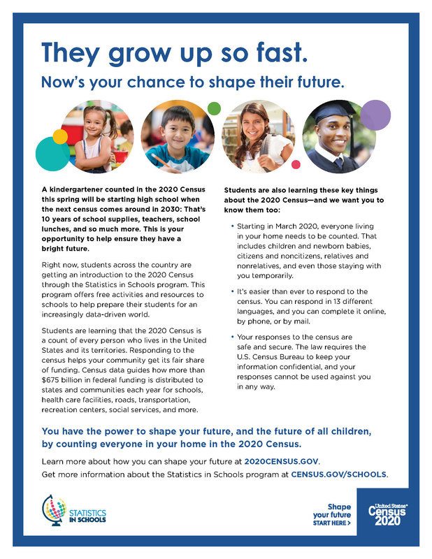 Please see the flyer below, also visit https://www.census.gov/schools for information of instructional materials for students.